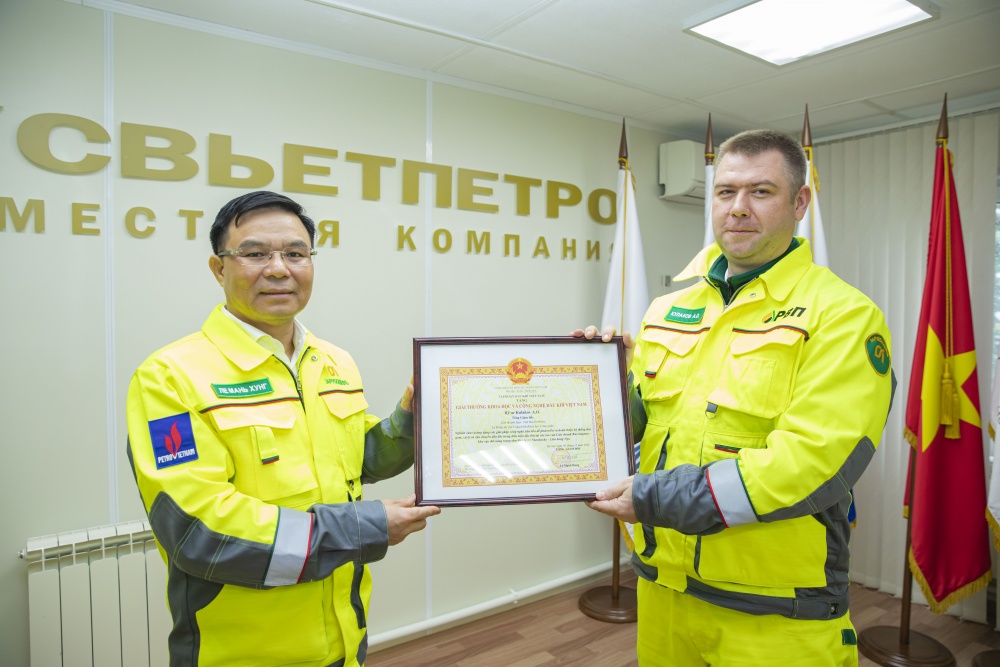 | 36-NAT-AB-0001-04 : Tổng Giám Đốc Tập đoàn trao giải thưởng khoa học cho Tổng giám đốc Rusvietpetro. |