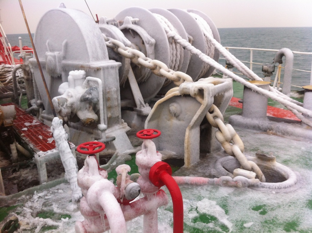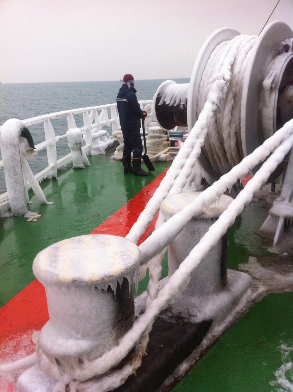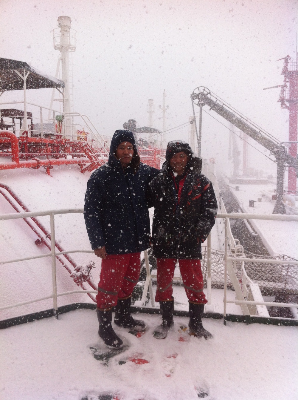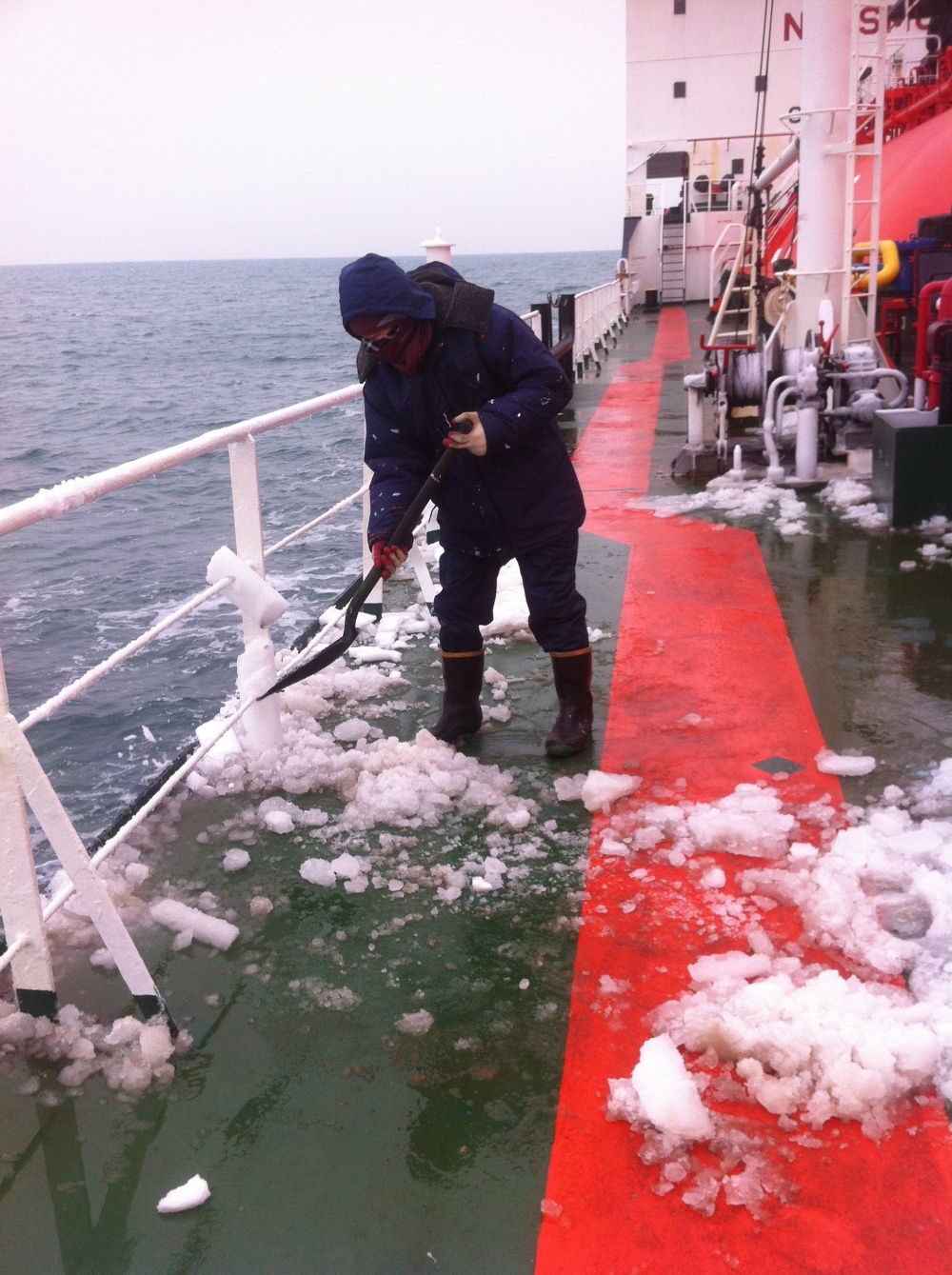 Tác phẩm dự thi "Petrovietnam trong tôi": Bộ ảnh "Tàu Sài Gòn Gas hoạt động khu vực Đông Bắc Á trong điều kiện thời tiết -5 độ C", tác giả Lê Huy Hùng (Gas Shipping)