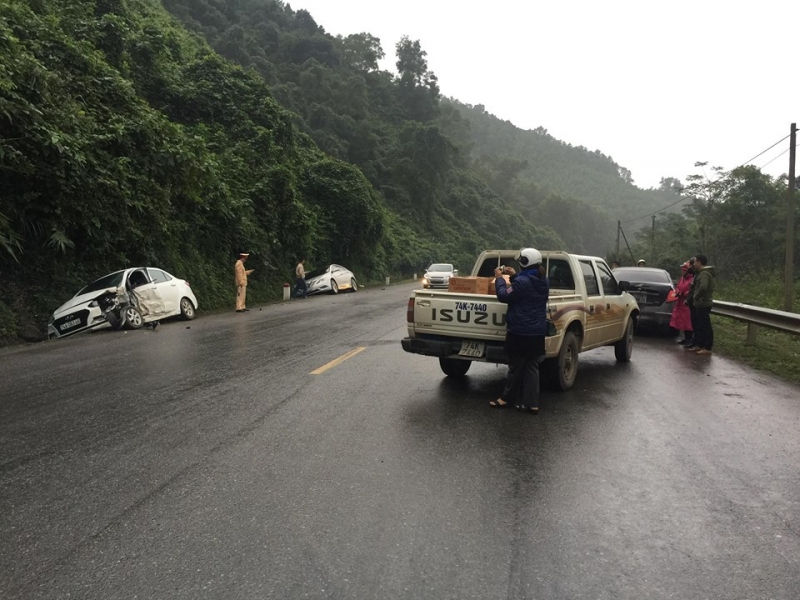 | Tai nạn liên hoàn trên Quốc lộ 9 khiến 4 xe ô tô hư hỏng |
