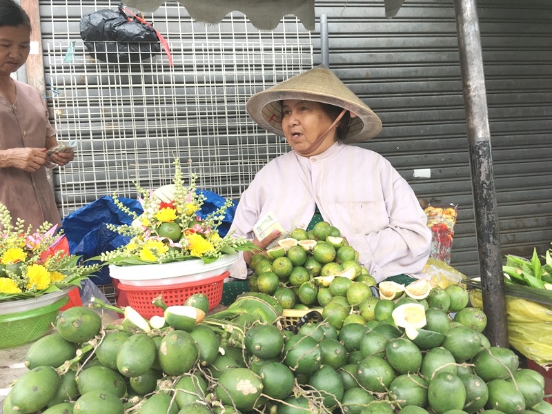 Bà Nương cho biết, hơn nửa thế kỷ trôi qua, hằng ngày bà lấy trầu, cau, vôi… ở vườn trầu Bà Điểm, Hóc Môn, từ sáng sớm mang ra đầu chợ này bày bán.