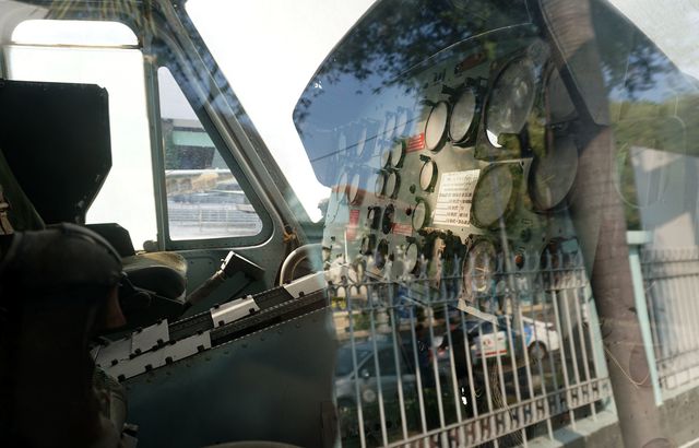 | Bên trong buồng lái của chiếc trực thăng vận CH-47. |