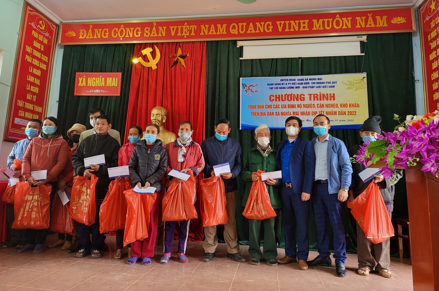 Chiều cùng ngày, Tạp chí Năng lượng Mới - Petrotimes cùng với Ngân hàng TMCP Đầu tư và Phát triển Việt Nam (BIDV) - Chi nhánh Phủ Quỳ phối hợp với Huyện đoàn Nghĩa Đàn đến xã Nghĩa Mai trao 100 suất quà, mỗi suất quà 500.000đ tiền mặt và quà tết cho các hộ nghèo, cận nghèo và những hộ có hoàn cảnh đặc biệt khó khăn.
