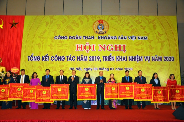 Nhân dịp này, Phó chủ tịch Tổng LĐLĐ VN Ngọ Duy Hiểu đã trao 5 Cờ thi đua xuất sắc và 3 Cờ thi đua chuyên đề của Tổng LĐLĐ VN cho các tổ chức công đoàn cơ sở, trao Bằng khen cho 6 lãnh đạo Công đoàn TKV có thành tích xuất sắc trong phong trào thi đua lao động giỏi và xây dựng tổ chức công đoàn vững mạnh. Công đoàn TKV cũng trao 12 Cờ thi đua cho các tập thể hoàn thành xuất sắc nhiệm vụ; 15 Cờ chuyên đề cho các đơn vị xuất sắc trong phong trào thi đua chăm lo đời sống NLĐ; 7 Cờ chuyên đề cho các đơn vị xuất sắc trong phong trào thi đua văn hóa thể thao; 6 Cờ chuyên đề cho các đơn vị xuất sắc trong phong trào thi đua xanh - sạch - đẹp, bảo đảm an toàn vệ sinh lao động; 4 Cờ chuyên đề cho các đơn vị xuất sắc trong phong trào thi đua giỏi việc nước, đảm việc nhà; trao biểu trưng vinh danh cho 10 doanh nghiệp đạt danh hiệu “Doanh nghiệp vì NLĐ” năm 2019.