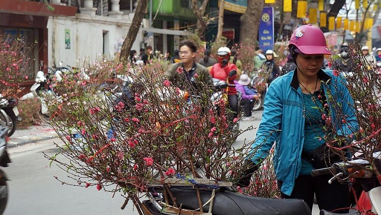 | Sắc hoa đào hồng thắm báo hiệu Tết đã đến rất gần |