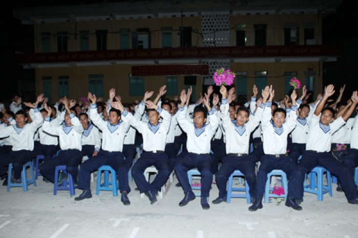 Cán bộ, chiến sĩ ở đảo luôn hào hứng với các tiết mục văn nghệ hát về mùa xuân, ca ngợi Đảng, Bác Hồ và ca ngợi những người lính biển.