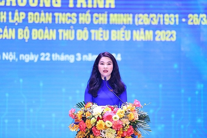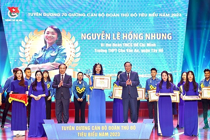 | Lãnh đạo Trung ương và thành phố Hà Nội trao khen thưởng cho các cán bộ đoàn Thủ đô tiêu biểu năm 2023. |