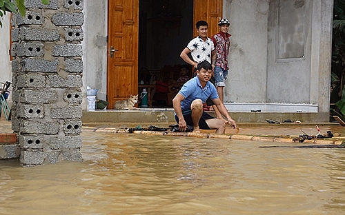 | Nước ngập sâu ở xã Thành Trực, huyện Thạch Thành. |