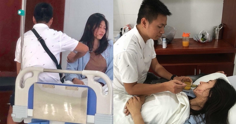 | Nạn nhân vụ đánh ghen đang được người nhà chăm sóc tại bệnh viện. |