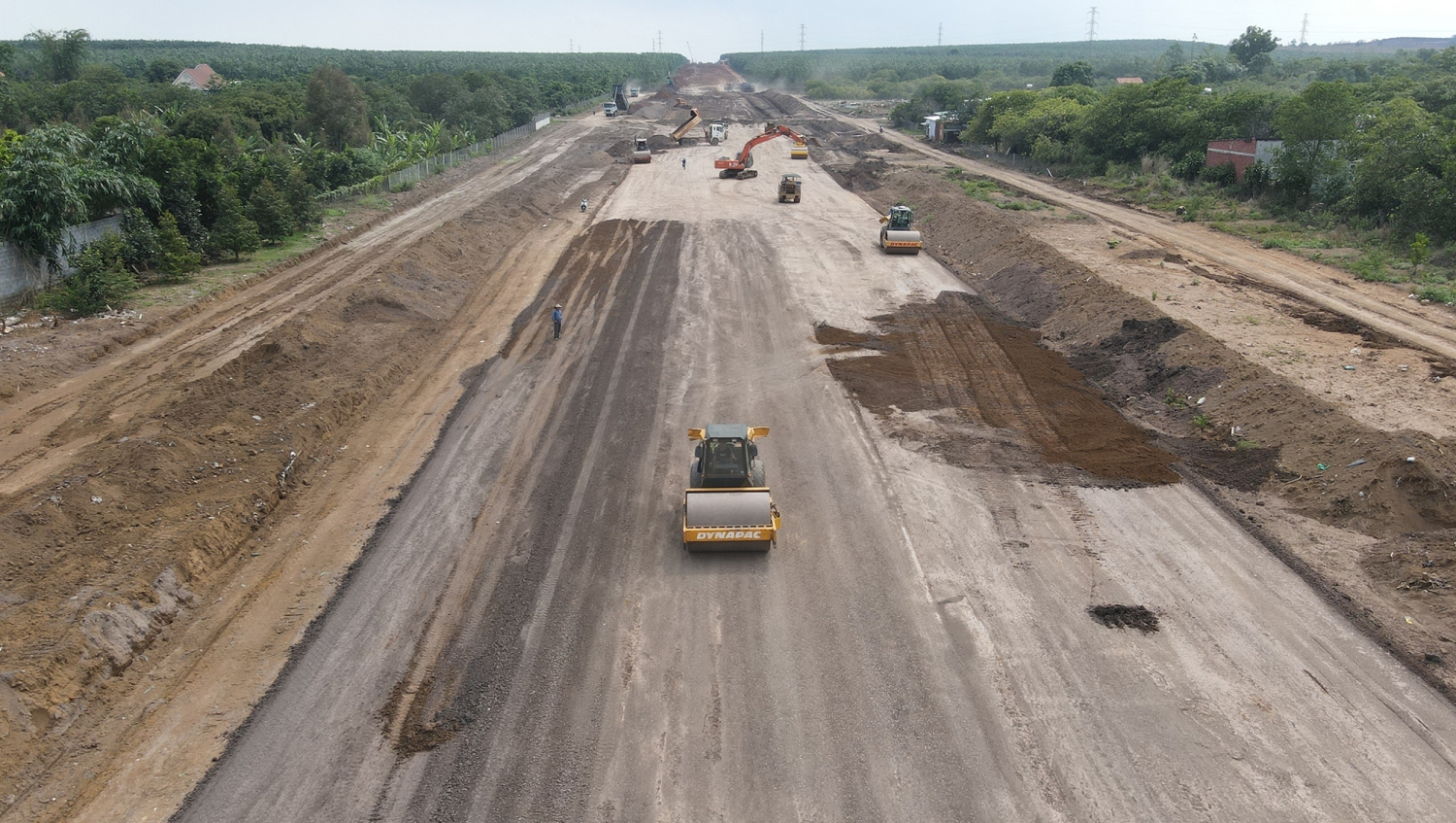 | Cao tốc Vĩnh Hảo - Phan Thiết đang dần thành hình, tuy nhiên tiến độ vẫn đang bị ảnh hưởng do thiếu nguồn vật liệu đất đắp nền. |
