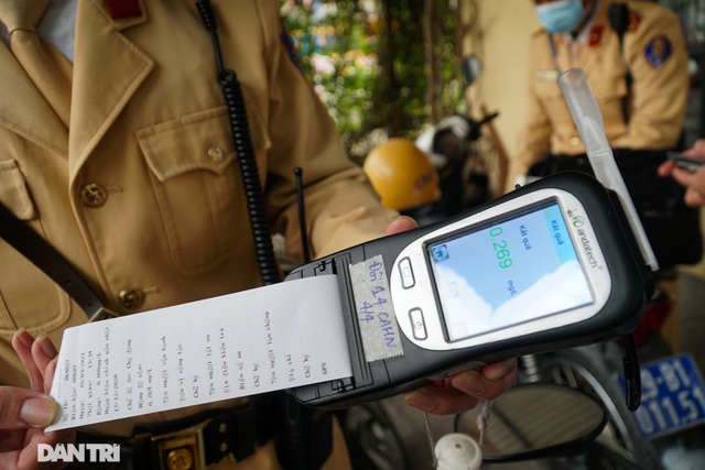 Anh N.D.H (SN 1985, trú tại quận Hai Bà Trưng, Hà Nội) là tài xế bị kiểm tra khi điều khiển xe gắn máy tham gia giao thông và trong người có nồng độ cồn. Theo kết quả kiểm tra, nồng độ cồn đo được đối với anh H là 0,269mg/lít khí thở. Với lỗi vi phạm này, lực lượng chức năng đã lập biên bản xử phạt anh H số tiền 4,5 triệu đồng, tước Giấy phép lái xe 17 tháng, đồng thời tạm giữ phương tiện mà anh H vừa điều khiển 7 ngày.