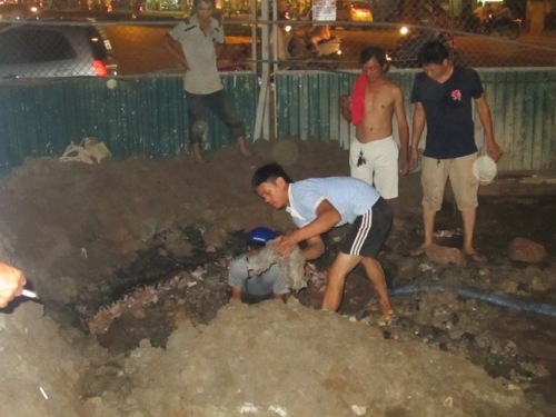 Ngay khi sự cố xảy ra, lực lượng chức năng đã có mặt để khắc phục sự cố, đảm bảo nước sinh hoạt cho người dân quanh khu vực.