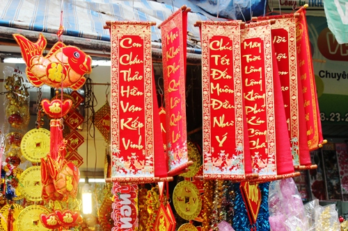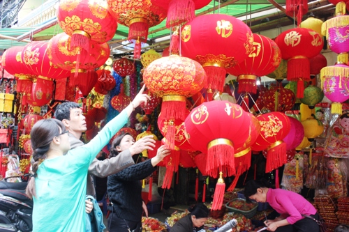 Cũng như mọi năm, những mặt hàng phổ biến được người tiêu dùng lựa chọn nhiều là đèn lồng, dây đèn cá chép, dây trang trí, đôi câu đối đỏ hay cả những chiếc phong bao lì xì…Đặc biệt, năm nay với biểu tượng con dê nên nhìn chung sản phẩm gắn với hình ảnh này được xem là xu hướng chủ đạo của thị trường đồ trang trí năm nay.