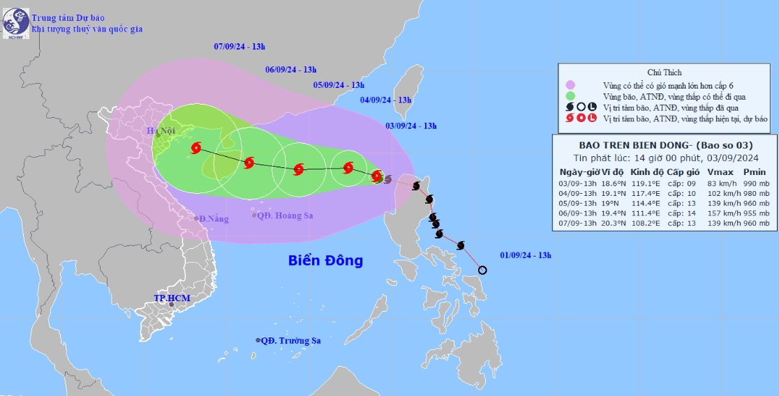 | Vị trí và hướng di chuyển của bão số 1. Ảnh: nchmf |