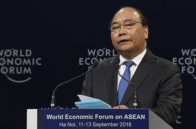 | Thủ tướng Nguyễn Xuân Phúc tại Hội nghị Diễn đàn kinh tế thế giới về ASEAN (ảnh: weforum.org) |