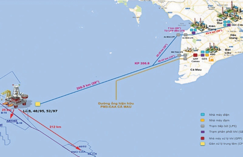 Trong đó, dự án Đường ống dẫn khí Lô B - Ô Môn do Công ty Điều hành Đường ống Tây Nam (SWPOC) triển khai là một dự án trọng điểm với tổng mức đầu tư 1,277 tỷ USD nhằm mục tiêu phát triển hệ thống tuyến ống có tổng chiều dài 431 km, trong đó tuyến ống biển dài 329 km và tuyến ống bờ dài 102 km cùng các trạm tiếp bờ, trạm phân phối khí, trạm van. Tuyến ống sẽ đi qua địa phận các tỉnh Cà Mau, Kiên Giang và TP Cần Thơ. Đây là dự án thuộc khâu trung nguồn, cùng với các khâu hạ nguồn và thượng nguồn cấu thành Chuỗi dự án khí - điện Lô B.