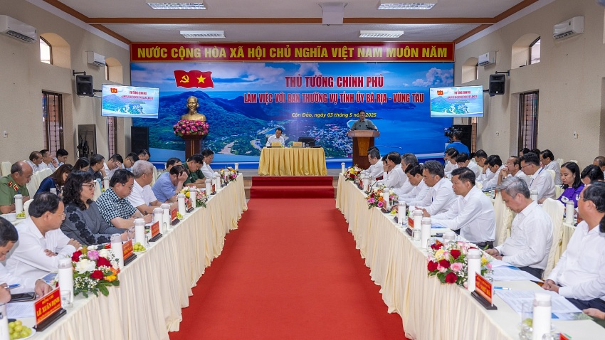 Phát biểu kết luận, Thủ tướng Phạm Minh Chính đánh giá cao những kết quả mà tỉnh đạt được, đồng thời đồng ý với các kiến nghị trọng tâm của tỉnh. Riêng với Côn Đảo, Thủ tướng nhấn mạnh định hướng phát triển nơi đây thành “đảo sáng - xanh - sạch - đẹp”, giữ vai trò tiền tiêu về quốc phòng, an ninh, đồng thời phát huy thế mạnh kinh tế biển, đặc biệt là du lịch sinh thái và tâm linh. Thủ tướng đề nghị tỉnh tiếp tục đầu tư hạ tầng, nâng cao chất lượng nguồn nhân lực cho Côn Đảo.