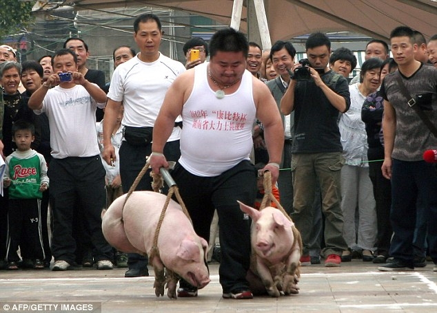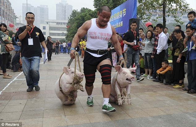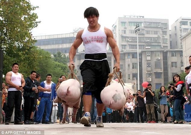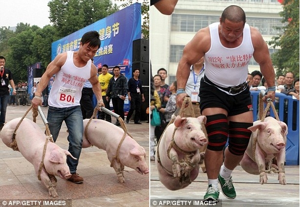 Theo đó, mỗi một thanh niên trai tráng tham gia cuộc thi này – được mệnh danh là những “ironmen” (người sắt) phải trên mỗi tay một chú heo sống mặc cho chúng kêu gào, và chạy nhanh về đích trên đoạn đường dài tới 30m. Người về đích sớm nhất sẽ là người chiến thắng. Có những người thậm chí còn không xách nổi 2 chú heo lên ngay từ vạch xuất phát, trong khi một số người làm việc đó nhẹ tựa… lông hồng. Đây là năm thứ 3 hoạt động này được tổ chức ở Hồ Nam.