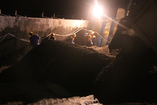 Không quản ngày nắng hay ngày mưa, ngày hay đêm, tất cả mọi hoạt động thi công, xây dựng trên công trường thuỷ điện Trung Sơn đều diễn ra bình thường.