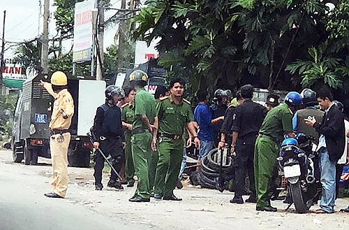 | Công an phong tỏa đường nổ súng khống chế học viên manh động (ảnh NLĐ) |