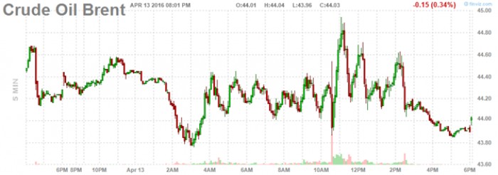 Giá dầu Brent giao tháng 6/2016 trên sàn ICE Futures Europe giảm 51 cent, tương đương 1,1%, xuống 44,18 USD/thùng.