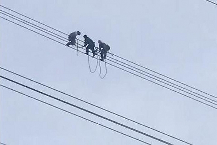 Giải cứu nam thanh niên ngồi vắt vẻo trên đường điện cao thế