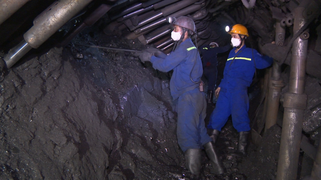 | Khai thác than ở lò chợ sử dụng giàn chống mềm ZRY - Công ty CP Than Vàng Danh - Vinacomin. |
