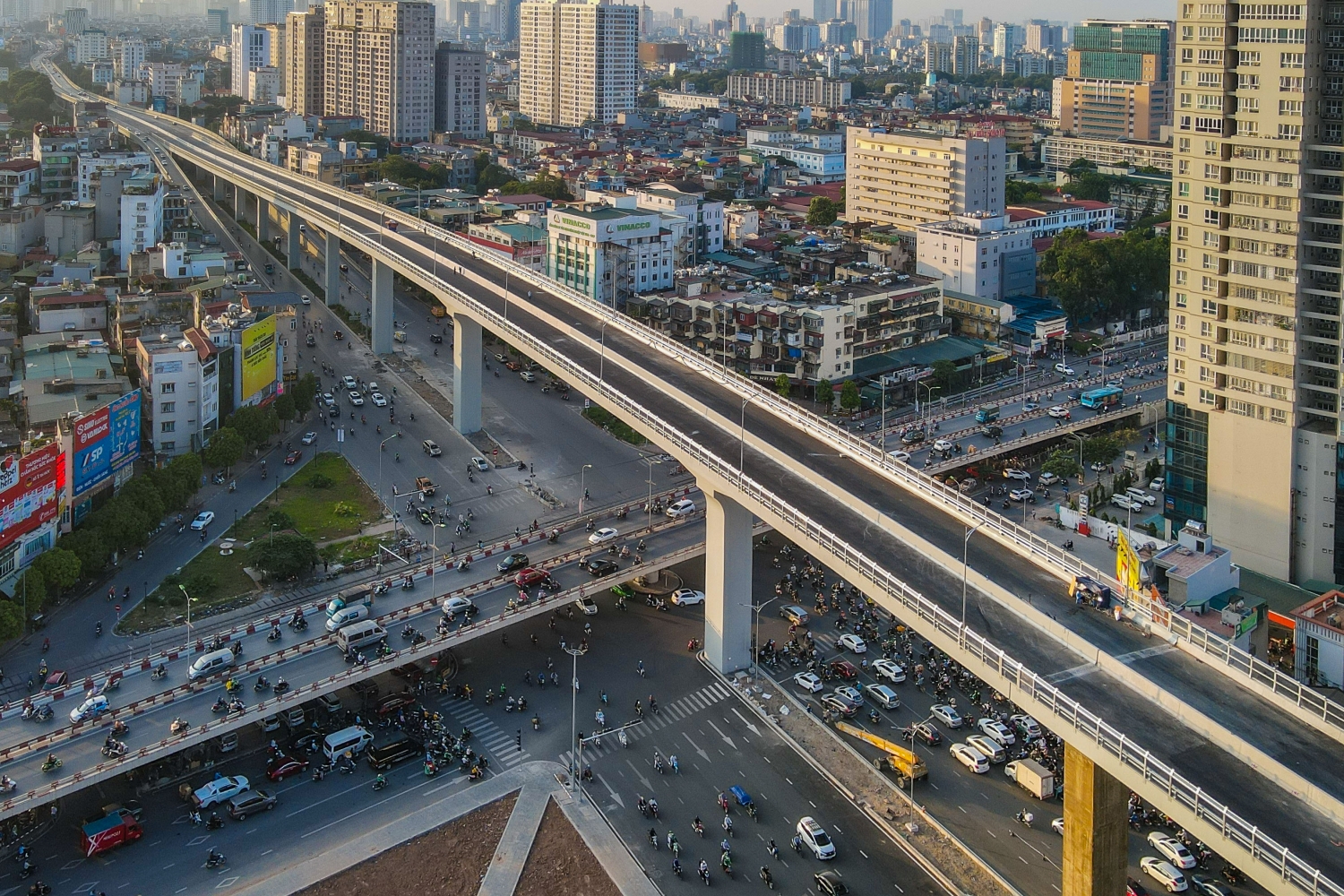 Hình ảnh nút giao thông 3 tầng có quy mô hoành tráng bậc nhất thủ đô trước khi đưa vào sử dụng đồng bộ.