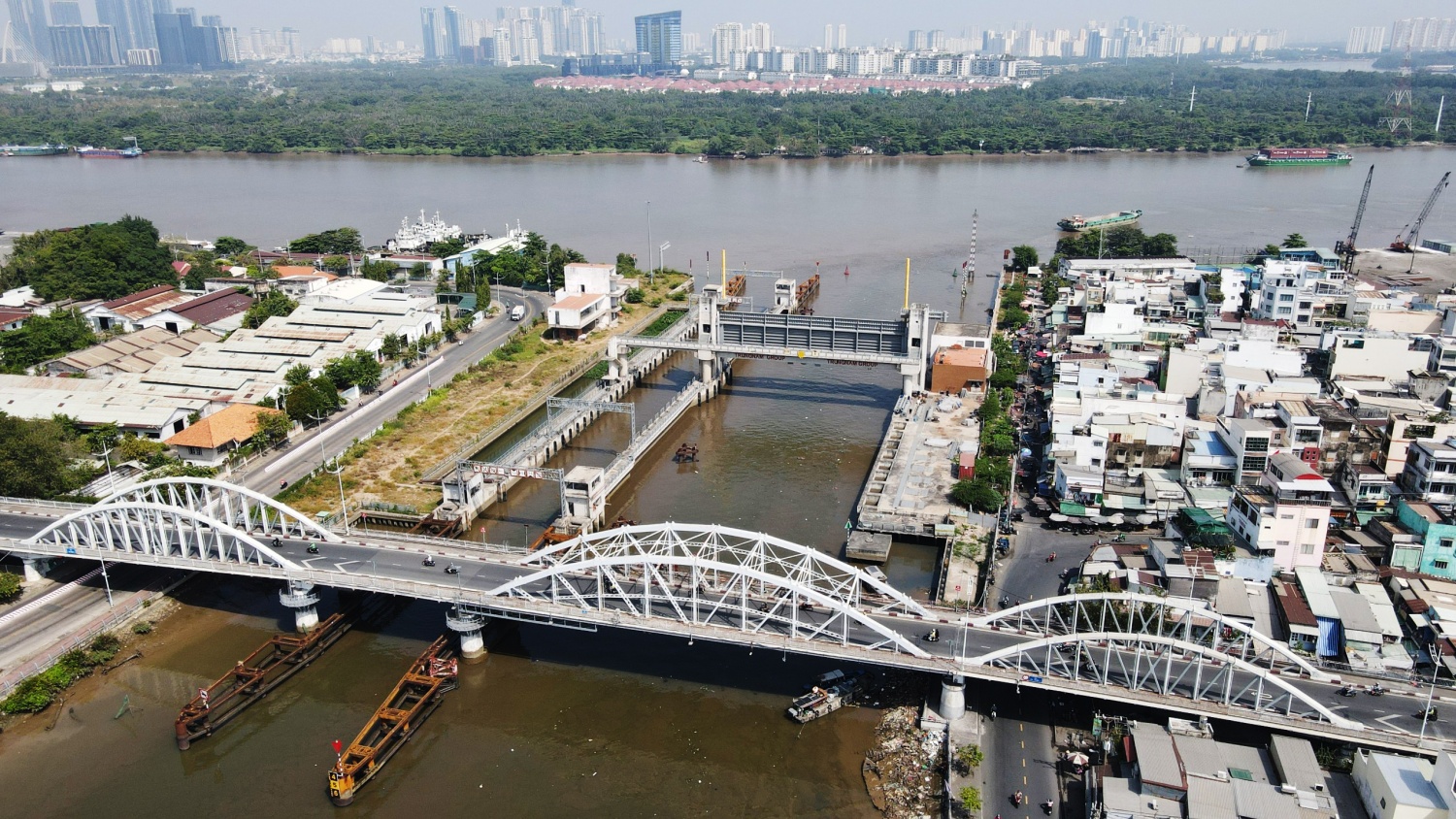| Cống kiểm soát triều Tân Thuận (quận 4 và quận 7) nằm trên Kênh Tẻ cũng hoàn thành 93% khối lượng, hiện công trình đã được lắp cửa van nặng 230 tấn, âu thuyền cũng đã hoàn thành. Cống Tân Thuận được kỳ vọng ngăn triều từ sông Sài Gòn vào kênh Tẻ, kênh Đôi, kênh Tàu Hủ - Bến Nghé, giải quyết cảnh ngập nước cho người dân quận 7, quận 4, quận 8, TP HCM. |