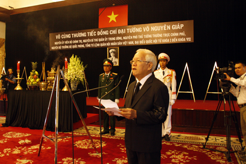 Phút mặc niệm tỏ lòng thương tiếc Đại tướng.