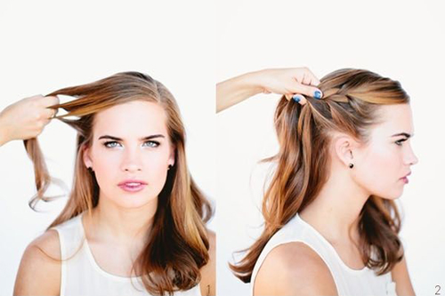 Lấy 3 lọn tóc từ một bên, thực hiện Tết kiểu Pháp.