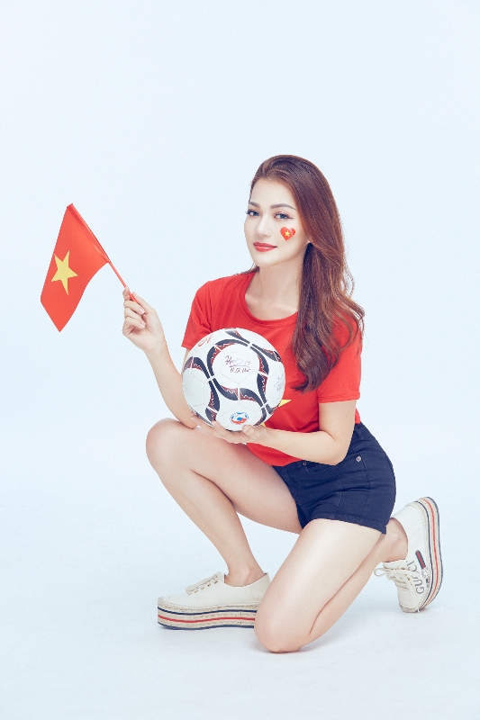Để cổ vũ đội nhà, siêu mẫu Hồ Đức Vĩnh đã cùng hai người bạn xinh đẹp yêu thích bóng đá của mình: diễn viên Trang Nhung, Thái Nhiên Phương- Hoa hậu Thế giới người Việt, thực hiện bộ ảnh... chiến thắng trước trận đấu.