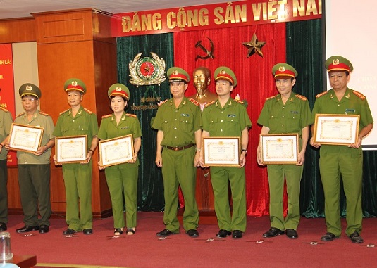 Trung tướng Trần Trọng Lượng trao giấy khen của Tổng cục cho các tập thể có thành tích xuất sắc.