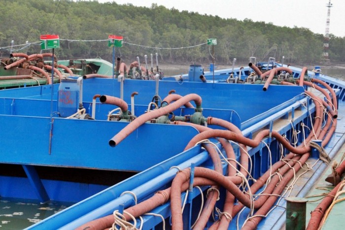 | Các sà lan cát bị lực lượng chức năng bắt giữ |