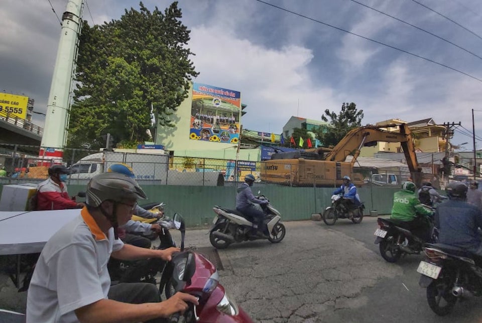 “Đoạn giao lộ Lương Định Của, hàng rào chiếm dụng toàn bộ một bên đường, nên phương tiện giao thông phải di chuyển qua phần còn lại. Giờ cao điểm, ô tô nối đuôi nhau kéo dài, còn xe máy nhích từng chút một”, cô Xuân kinh doanh tạp hóa trên con đường này kể lại.