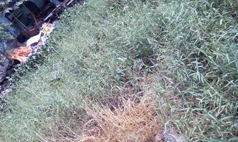 | Hiện trường nơi nạn nhân bị tạt axít - bãi cỏ bị axít văng vào cũng nhanh chóng bị héo úa. |