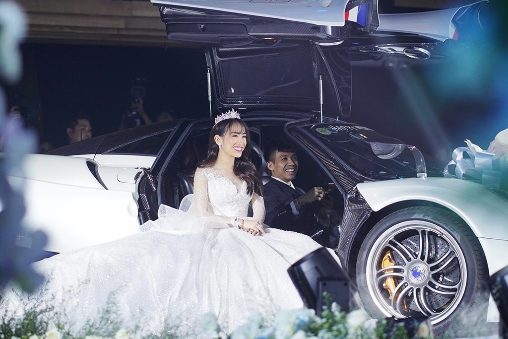 | Trong lễ cưới, Minh Nhựa khiến cả tất cả quan khách trong khán phòng phải trầm trồ khi anh lái chiếc siêu xe 80 tỷ đưa con gái lên sân khấu. Ở ngoài sảnh khách sạn, rất nhiều siêu xe khác cũng hội tụ và gây sự chú ý tò mò cho người đi đường |