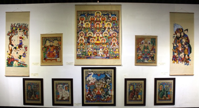 | Một số tác phẩm tranh hàng Trống được trưng bày ở triển lãm |