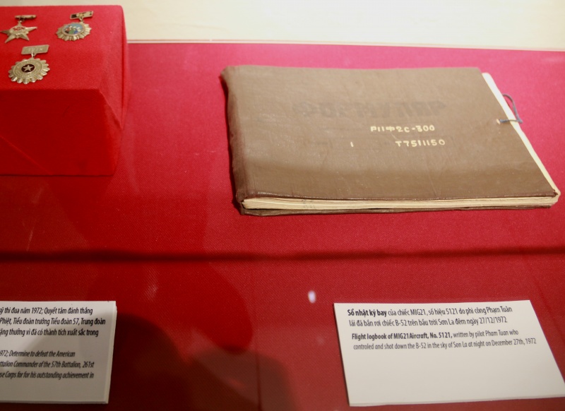 | Cuốn nhật ký bay của chiếc MIG21, số hiệu 5121 do phi công Phạm Tuân lái đã bắn rơi chiếc B52 trên bầu trời Sơn La đêm ngày 27/12/1972. |