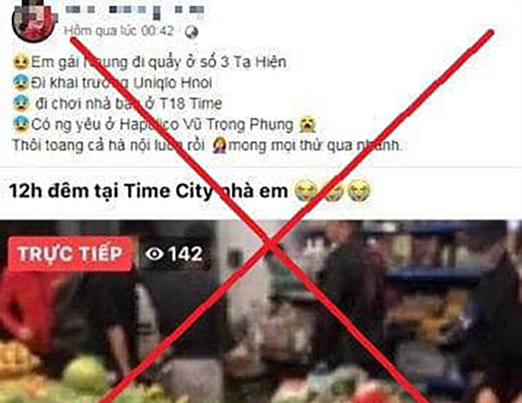 | Hình ảnh đăng tải thông tin sai sự thật của người phụ nữ 36 tuổi. Ảnh: Công an Hà Nội. |