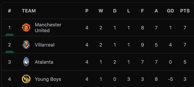 Vào 00h45 ngày 24/11, Man Utd sẽ có trận đấu lượt về với Villarreal ở vòng bảng Champions League để quyết định vị trí nhất bảng F khi cả hai hiện tại cùng có 7 điểm sau 4 vòng đấu (Man Utd xếp trên nhờ hơn hiệu số).