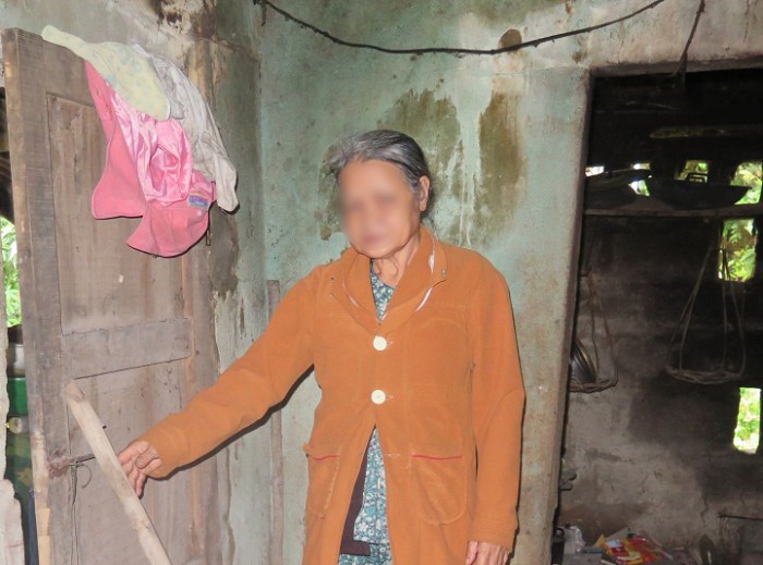 | Bà Ngô Thị Hương chỉ cánh cửa sau nơi tên Nhật đột nhập vào nhà để trộm cắp. |