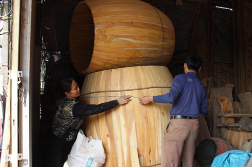 Để làm được một chiếc trống phải trải qua nhiều công đoạn và vật liệu chủ yếu là gỗ mít, da trâu, tre cùng bí quyết riêng của làng nghề.