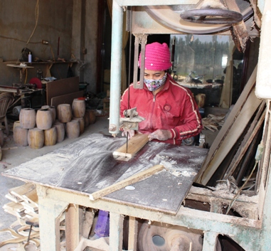 Công đoạn pha gỗ để làm “dăm” trống khá quan trọng, đòi hỏi độ chính xác cao để khi ghép tang không bị lệch.