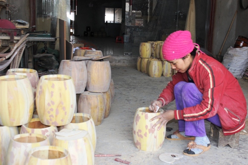 Cận Tết Giáp Ngọ, nhiều hộ gia đình còn chuyển sang làm bình rượu. Đây cũng là nguồn thu không nhỏ của các hộ gia đình làng trống Đọi Tam