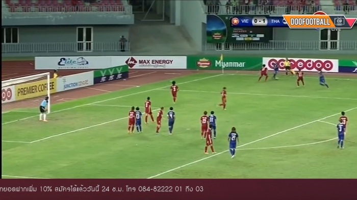 Phút 38: Có tới 3 hậu vệ Việt Nam vây hãm Kanjana nhưng vẫn để số 21 Thái Lan vượt qua sút bóng về phía khung thành. Rất may bóng đã được phá ra đường biên ngang. Phạt góc bên cánh phải cho Thái Lan.