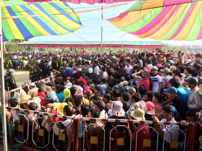 Hơn 4.000 người dân tập trung kín khán đài xét xử.