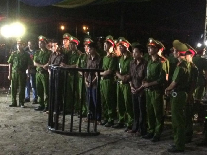 Sau phần thẩm tra lý lịch, đại diện VKS đọc cáo trạng buộc tội các bị cáo. Người nhà nạn nhân không kìm được bức xúc, la hét. Chủ tọa phải cho tạm dừng phiên tòa để ổn định tình hình. Lực lượng bảo vệ phiên tòa phải nhắc nhở gia đình bị hại bình tĩnh để phiên tòa được tiếp diễn.