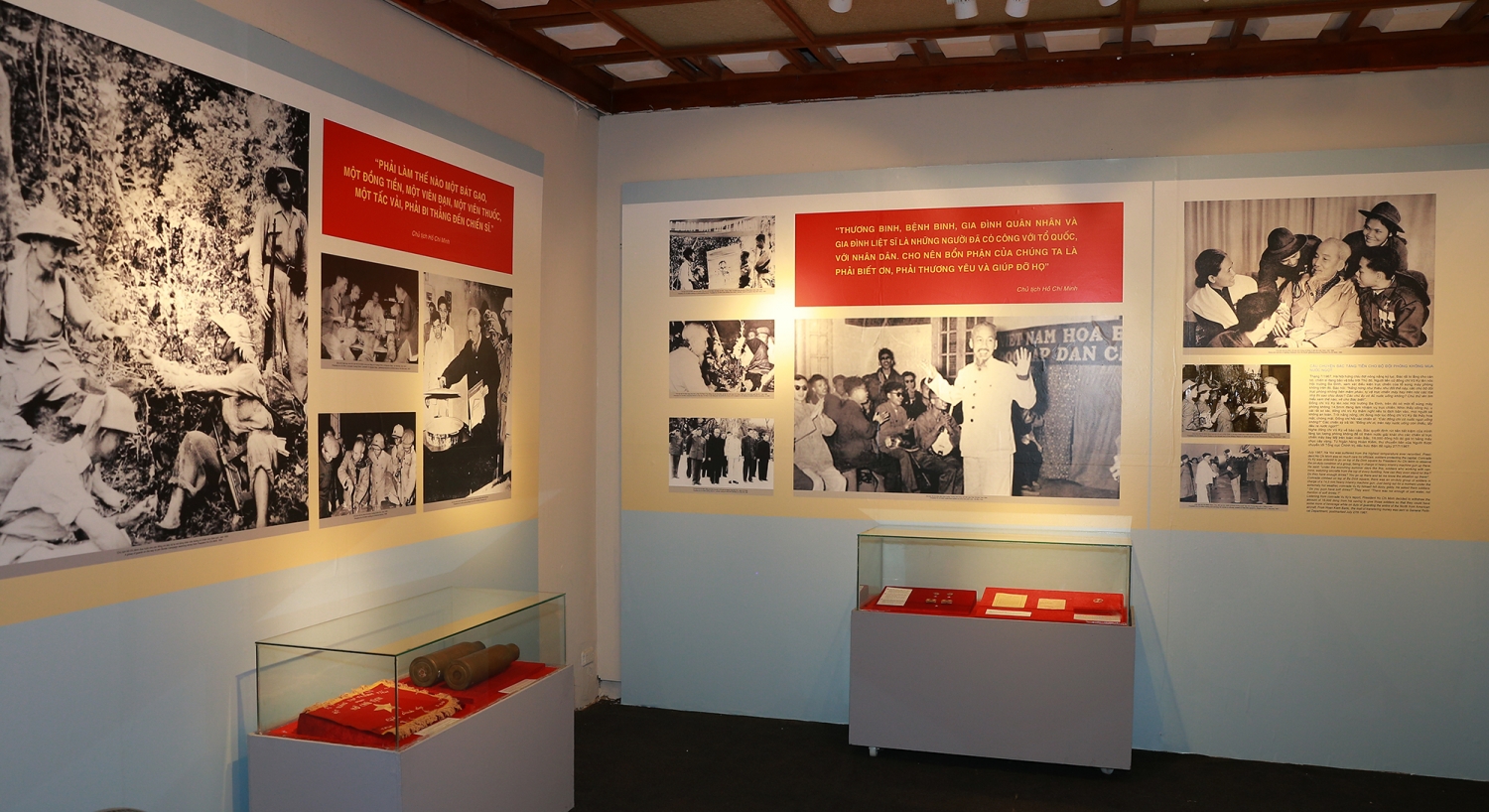 Triển lãm giới thiệu nhiều tài liệu, hiện vật về Chủ tịch Hồ Chí Minh đang lưu giữ tại Bảo tàng Lịch sử Quân sự Việt Nam và Cục Văn thư và Lưu trữ Nhà nước, như: Tráp đựng sâm của gia đình ông Ma Đình Tập (Định Hóa, Thái Nguyên) gửi biếu khi Bác ốm nặng ở Lán Nà Nưa (Tân Trào, Tuyên Quang) trước Cách mạng tháng Tám một tháng, tháng 7/1945; Sắc lệnh số 34/SL về tổ chức Bộ Quốc phòng do Chủ tịch Hồ Chí Minh ký ngày 25/3/1946; Cờ “Quyết chiến Quyết thắng” do Chủ tịch Hồ Chí Minh tặng thưởng Đại đoàn 312 - đơn vị lập công xuất sắc trong Chiến dịch Điện Biên Phủ năm 1954; Quyết tâm thư của cán bộ, chiến sĩ các hòm thư 3275b, 327b và 3277 tỉnh Nghệ An gửi chúc mừng sinh nhật Bác 73 tuổi, hứa quyết tâm hoàn thành tốt nhiệm vụ vào miền Nam chiến đấu, ngày 19/5/1963; Huy hiệu Bác Hồ của Thượng tướng Văn Tiến Dũng, Tổng Tham mưu trưởng Quân đội nhân dân Việt Nam được Chủ tịch Hồ Chí Minh tặng vào ngày 24/10/1967; Đèn tự tạo làm bằng mảnh xác máy bay B-26 của Mỹ bị quân và dân miền Nam bắn rơi ở Chiến khu Đ và gửi tặng Bác nhân dịp mừng thọ Người 78 tuổi, ngày 19/5/1968; Sổ tay của đồng chí Vũ Xuân Khoái (cựu tù Phú Quốc) dùng để ghi chép tài liệu và 6 bài thơ tự sáng tác “Hãy xứng đáng là người con của Bác Hồ” để cổ vũ tinh thần đấu tranh của anh em trong ngục tù, tháng 10/1969.