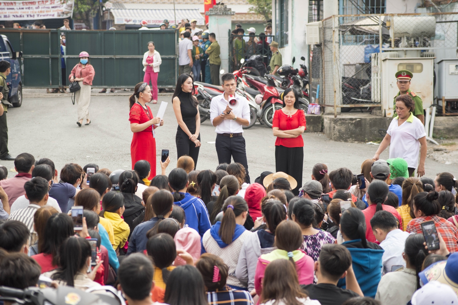 Tổng số tiền hỗ trợ gần 1 tỷ đồng được vợ chồng Thủy Tiên - Công Vinh trao tận tay hơn 300 công nhân tại Công ty TNHH may Xuân Hiếu (Yuko Vina) ấp Bình Đức, phường Bình Hòa, thị xã Thuận An, tỉnh Bình Dương vào chiều 18/01.