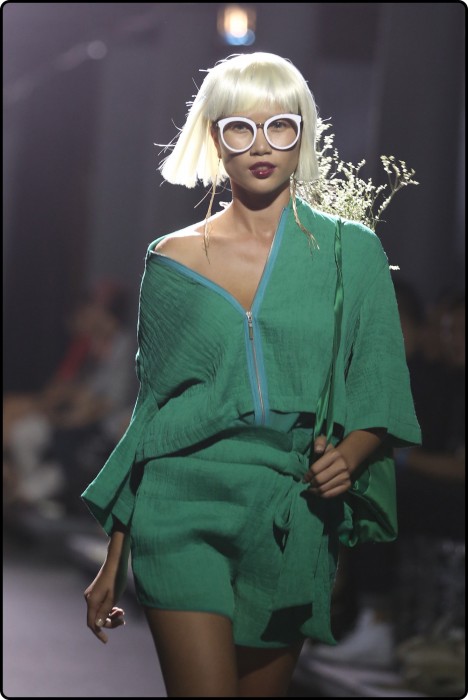 | Bên cạnh những thiết kế mang phong cách nữ tính như áo hai dây, đầm freesize, đầm maxi với những chi tiết những dải nơ đài tha thướt, những ứng dụng hiện đại như jumpsuits, áo khoác bomber, quần cullotes theo xu hướng layer, oversized mang đến cho BST hơi thở hiện đại, tươi mới. |
